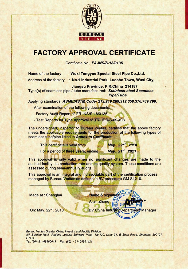 無錫騰躍特種鋼管有限公司創(chuàng)建于1987年,地處江蘇省無錫市惠山區(qū)洛社鎮(zhèn)。公司占地面積18萬平方米,現(xiàn)有員工350人,是一家專業(yè)生產(chǎn)不銹鋼無縫管的企業(yè),年產(chǎn)能5萬噸。主要規(guī)格:外徑6~630mm、壁厚0.7~40mm。主要材質(zhì):奧氏體、奧氏體-鐵素體、鎳基合金等。 公司是中石化、中石油、中海油、核電的供應商網(wǎng)絡成員單位,是江蘇省AAA級信用單位。公司先后通過ISO9001質(zhì)量管理體...